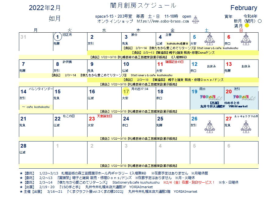 2月創房/闇月創房ギャラリースケジュール