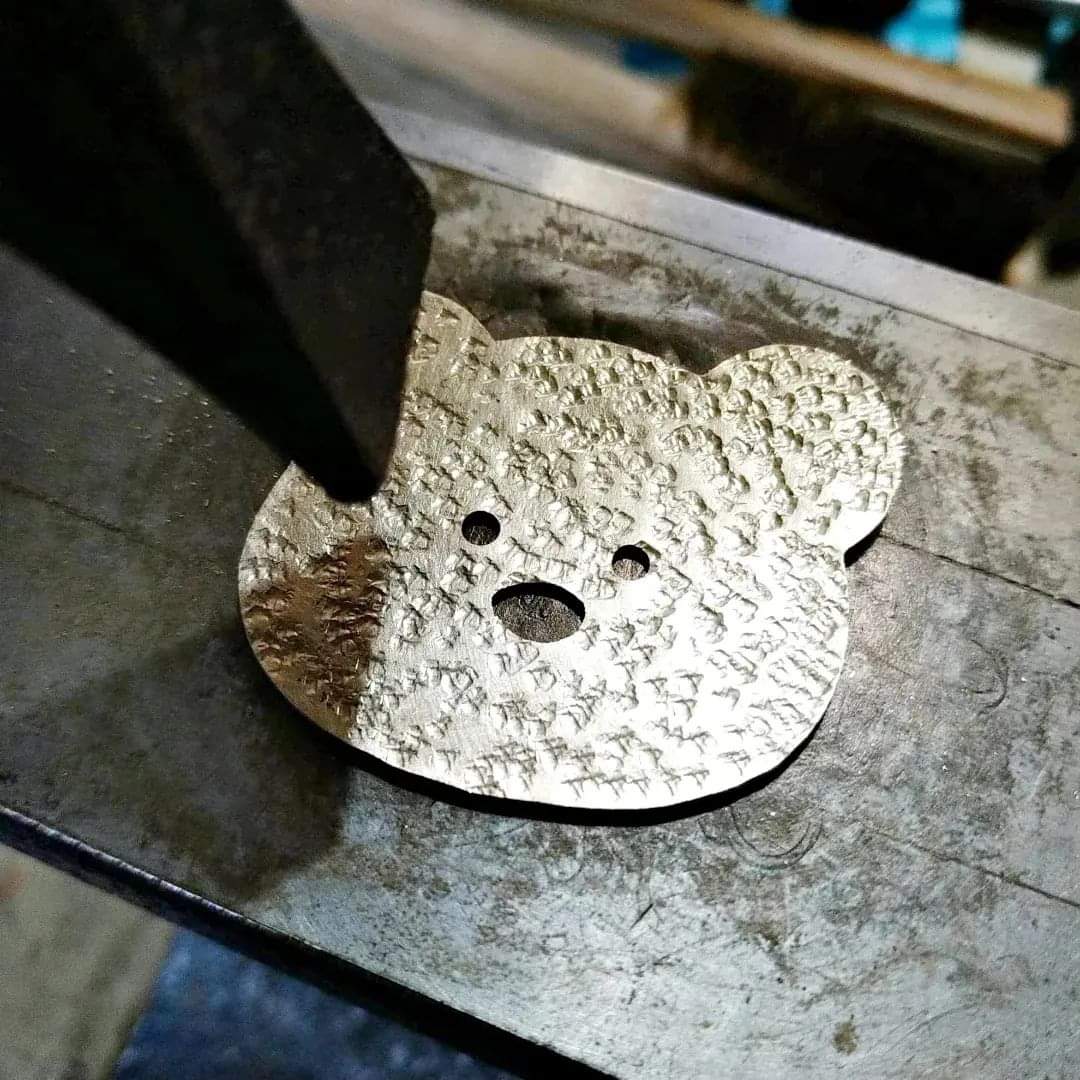 鏨(タガネ)で、鍛金(叩く)し、表情を付けます
